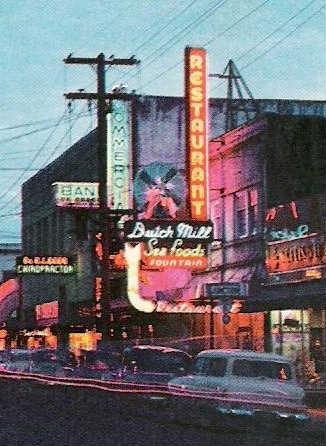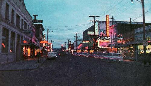 Except for a new Safeway (a bit back from the main drag), downtown Tillamook does still look pretty much like this. The Dutch Mill is still around.