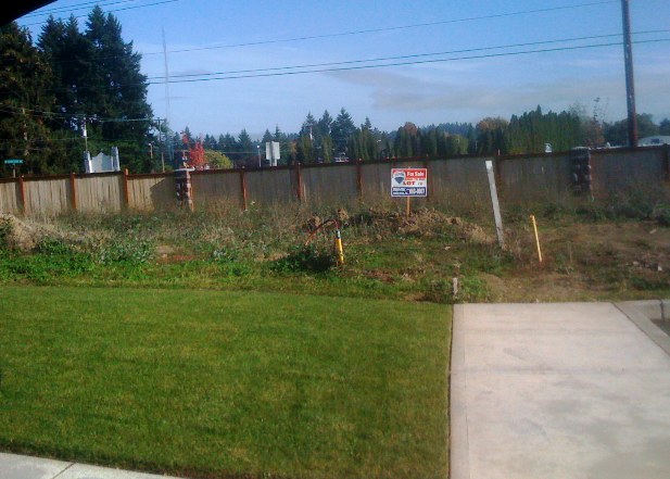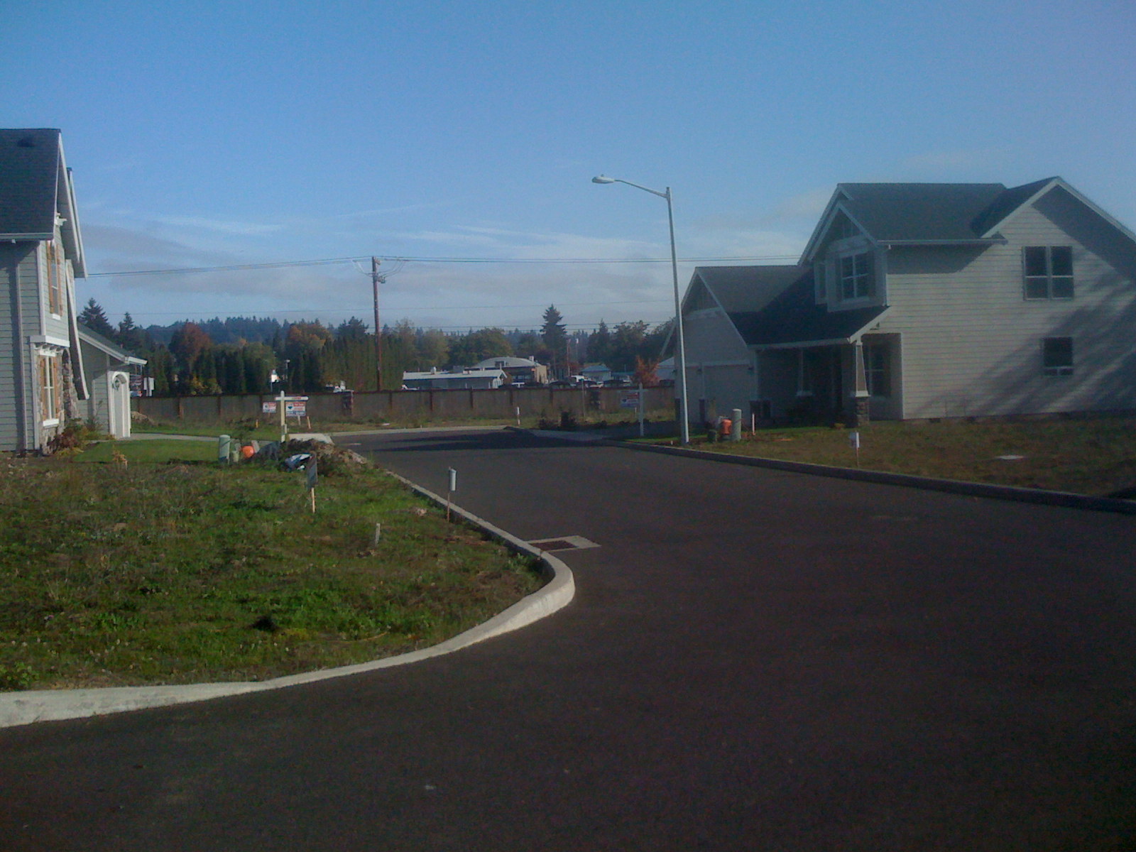 One of the homes, built in that typical, boring “Northwest Style” stands vacant. Is that a hint of castle motif?
