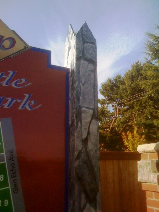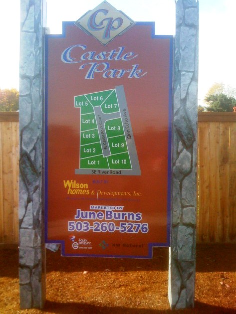 The kicker though is the signage. I just noticed that the faux gated community is called….wait for it…Castle Park. James Kunstler was quoted as saying once that developers like to call the developments they build after whatever tree or land they destroyed. True.