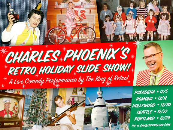 The good people at the Mid Century Modern League are presenting “Charles Phoenix’s Retro Holiday Slide Show” next month.