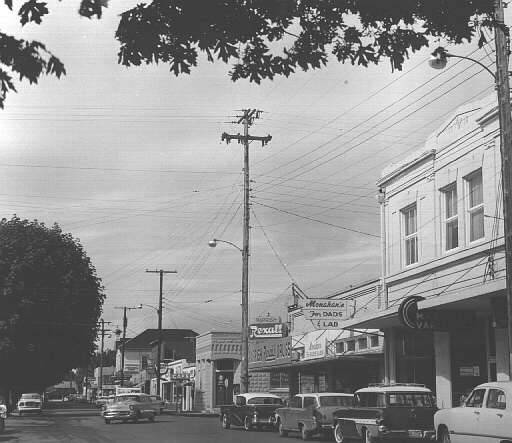This photo perfectly captures a moment in time, of Main Street, USA. When Americans could spend and shop locally and get all their goods on one street. Names like Mangus Variety, Monahan’s for Dads and Lad (great name) Parrish Rexall, cafe, and hardware store.