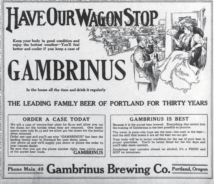 Gambrinus Brewery churned out beer for thirsty Portlanders in the late 1880s and early teens in Portland until Prohibition. Walla Walla-based Northwest Brewing Company, Inc., attempted to re-open Gambrinus in the 30s after Prohibition but those plans fizzled out. The current Gambrinus Company isn’t related as far as we know.