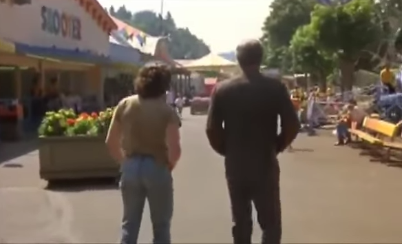 Their big heist in the film? Oaks Amusement Park. Yep. Big-time money to be had at the park. In fact, there’s a scene where Reynolds and Siemaszko are scoping the place out and watching security guards load BAGS of money from the day’s profits. (Who knew?) This also means there’s lots of great shots of the park.