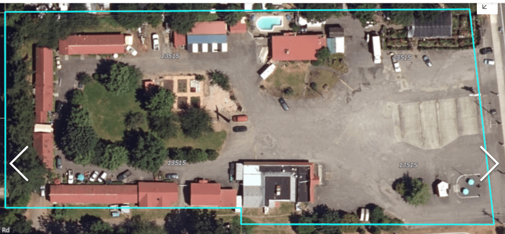 Actually, what’s for sale is most of the land that the former restaurant (closed during COVID in 2020) and gas station (closed years ago) and once featured the B-17 Lacey Lady, a WWII-vintage B-17G four-engine Bomber looming over the property.