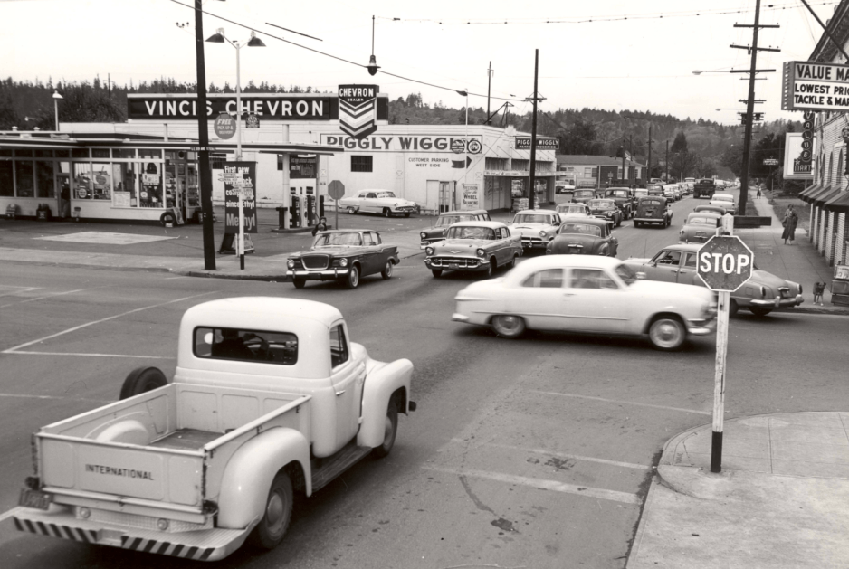 Across from the Halverson’s property where the Starbucks is stood an unsightly Pizza Hut. Around the corner one could check out a matinee at the Sellwood Theater (now Columbia Sportswear). Where New Seasons Market sits used to be a grocery store with a Laundromat attached to it that went by numerous names. Or you could hang out at the Leipzig Tavern (now Gino’s Restaurant and Bar but the Leipzig sign is still there) “where fishermen would come and brag on who caught the biggest fish,” says Halverson.
