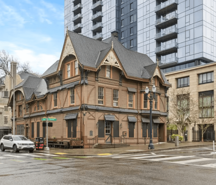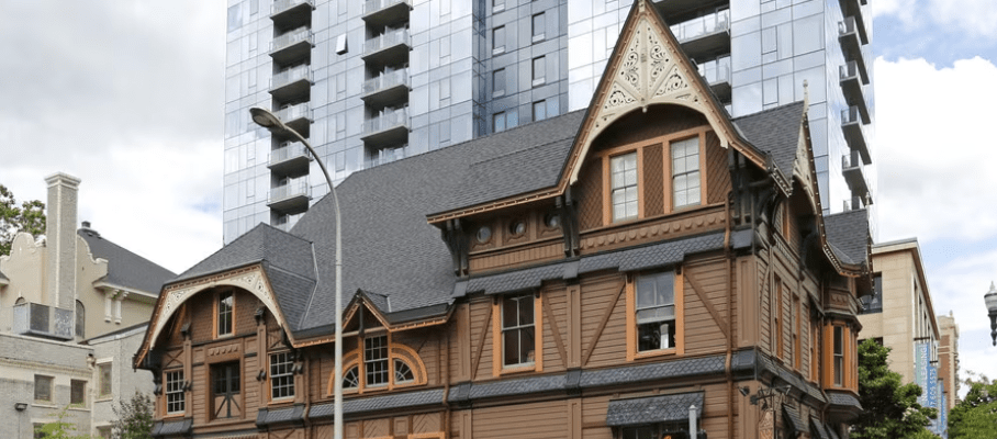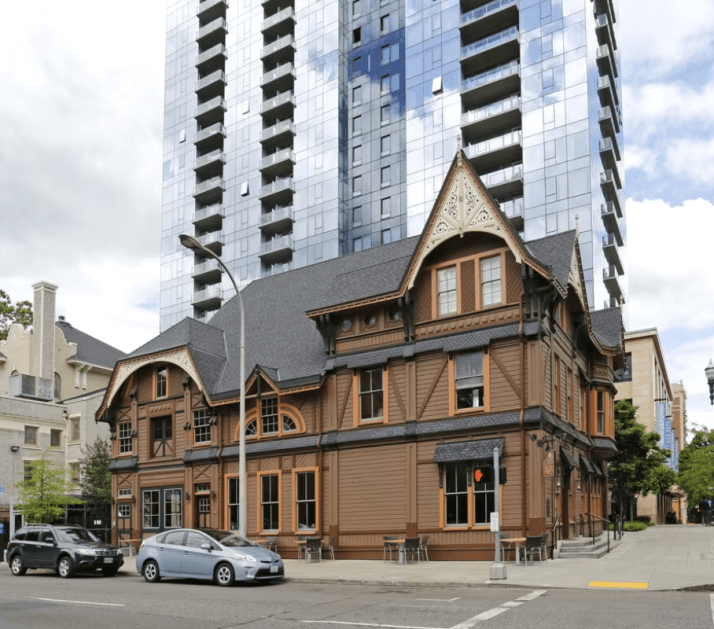 You may recall that it was threatened with demolition in 2004. In 2007, it was moved three blocks so the new owners could build an underground parking structure.