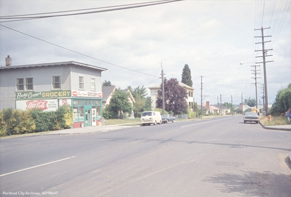 The Phoenix Pharmacy building at the intersection of SE Foster Road and 67th Street, with its rounded brick corner and curved windows, is one of Portland’s most iconic buildings.