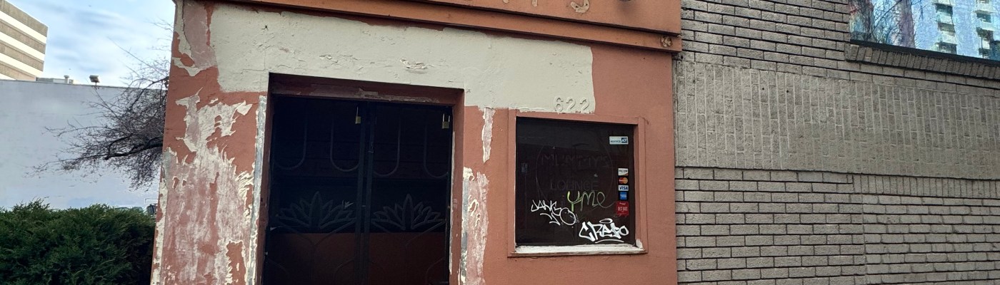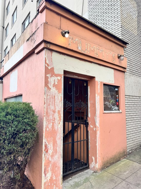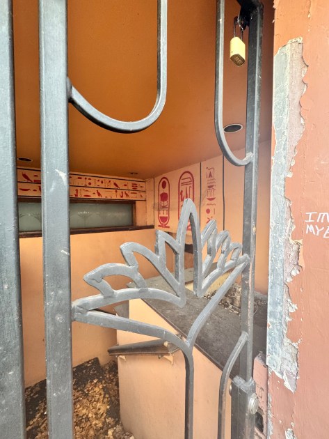 In the late 2010s this was a place where my wife and I could take the stairs down to a low lit restaurant, find a booth and order drinks and a post-ten p.m. dinner. And often be the only customers there. The food may or may not have been Egyptian, but it was at least middle-eastern and decent enough, with the two friendly guys behind the bar looking on. They were always there when we came in, never saw any other staff, both at least middle aged and as I remember they were definitely Eqyptian. Sad to see the shackled exterior of this strange little building downtown, but bracing that we have Lost Oregon to catalog what is fading or what has left us – the special character of eccentric, distinctive, or reassuring structures and the atmosphere therein.